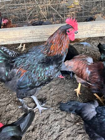 Black copper maran roosters born in the first week of April. I have 3 of them. $20 each