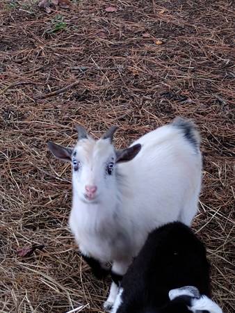 $80 Intact male Pygmy goat 5-6 months old Has blue eyes $150 2 yr old, female pygmy x Nigerian Drawf Has blue eyes I am very sure she is pregnant, she was bred by another buck Can sell together as a...