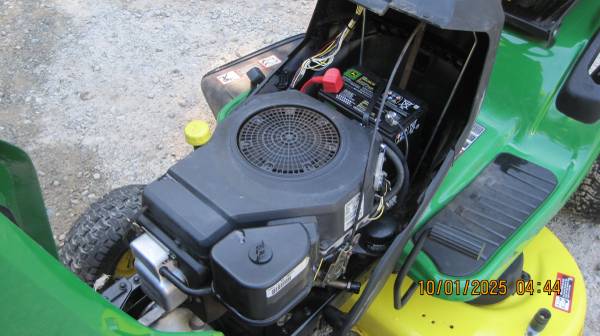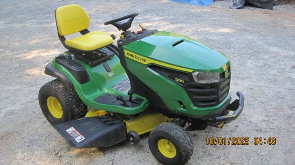 Clean !! John Deere S130. Fully automatic transmission. 42 inch cut. Push button deck engagement. Kohler Command Engine. Electronic fuel guage. New John Deere battery. Fully serviced with new oil,oil filter, air filter, fuel filter, spark plug. Sharpened blades, leveled deck, greased, tires aired. This is a 2022 model. Starts easy runs great, cuts smooth. You can ride it when you come to purchase.