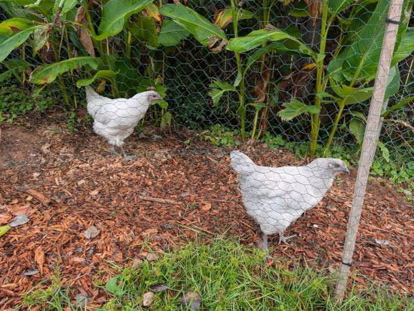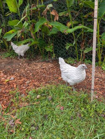 2 beautiful girls need a new home ASAP. Perfect for starting or adding to your backyard flock. Fantastic egg laying breed, friendly and handled daily. 6 weeks old $20 for both OBO. All of our chickens are free range, excellent diets, with lots of added herbs and nutrients, dewormed, no issues. Pics show them as chicks, Pullets now, and our other lavenders so that you can see what they will look like as grown hens