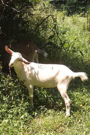 Born middle of March 2025. Disbudded and vaccinated. She has a quarter Nigerian Dwarf,quarter saanen, half nubian. Mom mini saanen ,dad full nubian. She was a twin and is the white twin doeling in the pics. Her milk should be full of cream with ND and nubian genes. I have a new mini nubian buck she could be exposed to if you wish before purchase.