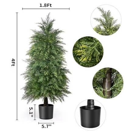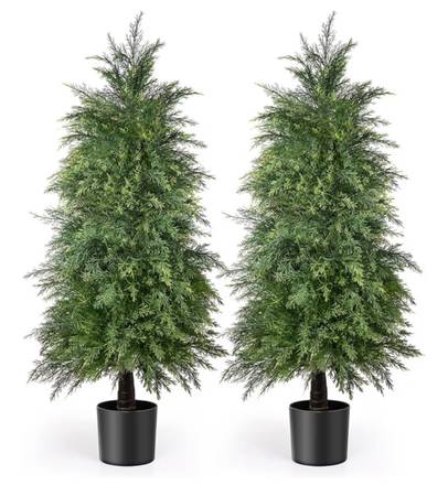 2 Pack - 4ft Artificial Cedar Topiary Trees/Shrubs for Outdoor/Indoor. New priced at $160, asking $100 for both. Serious inquiries and cash only. Willing to meet at reasonable location.