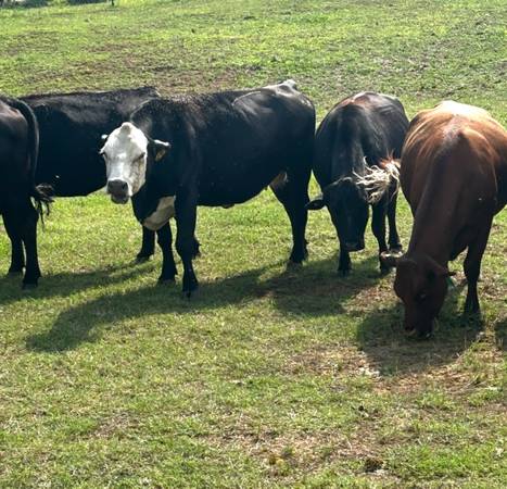 I have 30 jam up bred cows and 1 pair , mostly black -bwf rest are cross breeds ( red angus, char X, red white faces) all are 6 and younger and will be bred to a black angus bull. All cows checked to calf out by feb 30th. The cow that calved already has a bull calf that’s about 5 weeks old. All these will come to feed are gentle and easy keepers. I will separate but rather them stay together.