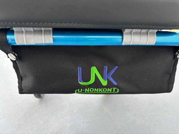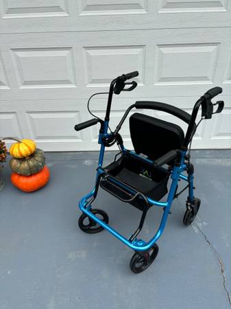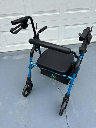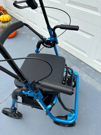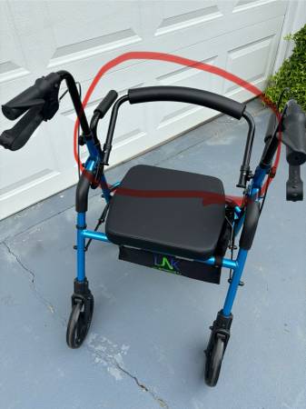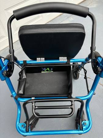 Very nice rollator with seat that lifts for storage underneath. Bar moves up for seating.