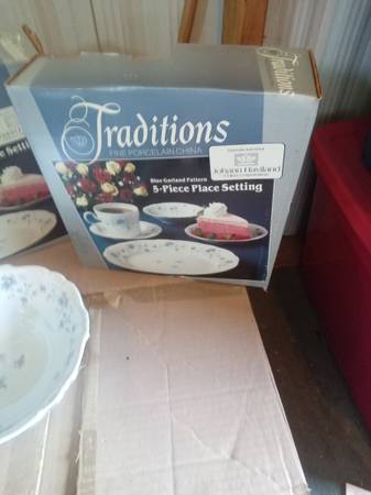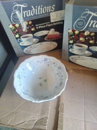 5 piece setting in box. I have 7 unopened boxes and 1 loose serving bowl.