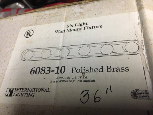 Never used Brass 6 light bulb, bathroom wall vanity light fixture, still in its factory box call me if interested