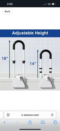 Adjustable Bathtub Safety Rail: Shower Grab Bar Handle for Seniors, Elderly, and Disabled, 14–18 Inch Height Range, Bathroom Safety Bars with Non-Slip Grip, Supports 300 lbs