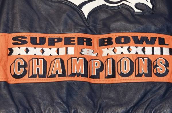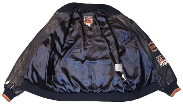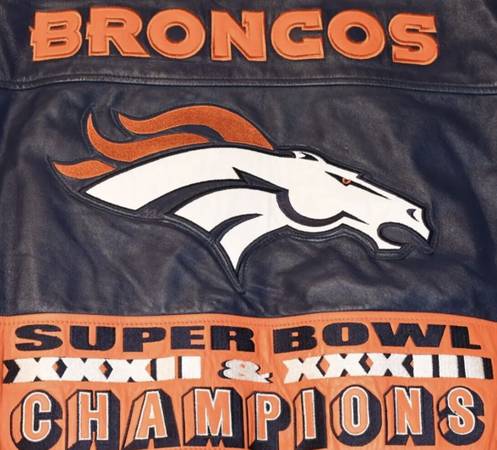 Celebrate the Denver Broncos' Super Bowl victories with this vintage leather jacket. The jacket features the team's colors of blue and orange and displays the team's official logo. It's perfect for male fans looking to show off their support during football season. This officially licensed G-III jacket is a size large and was manufactured in Indonesia. It's a great addition to any fan's collection and is perfect for wearing to games or just out and about. Don't miss out on the chance to show your Denver Broncos pride with this Super Bowl XXII & XXXIII Champions jacket. We are asking $150 or best offer and we accept all forms of payment. We also offer free local delivery, shipping, and free 60 day returns. Thank you for checking out our item and we look forward to hearing from you soon.