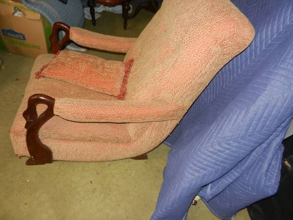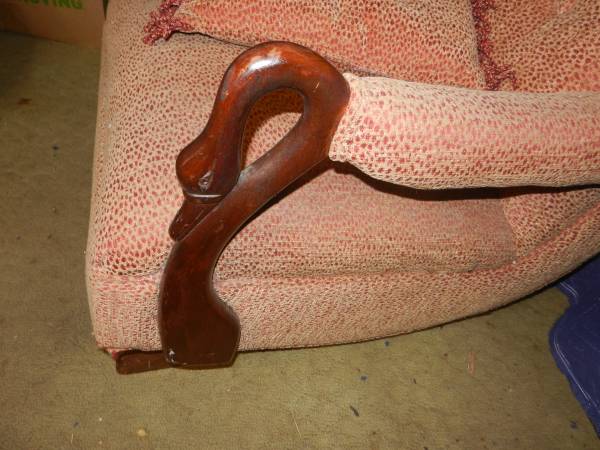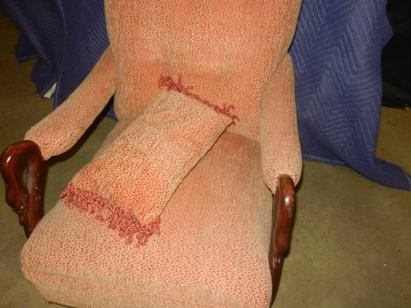 Antique Gooseneck rocking chair, must see to appreciate, been recovered with a addition pillow. **** If purchased will deliver local for a small fee. ***** $100 cash . REDUCED to sell !!!! Call show contact info