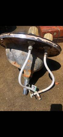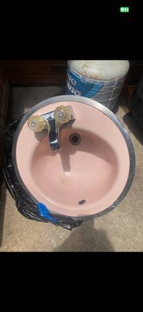 Vintage Sink Cast iron Porcelain Includes all hoses and working faucet Was recently taken out of bathroom everything still works properly.