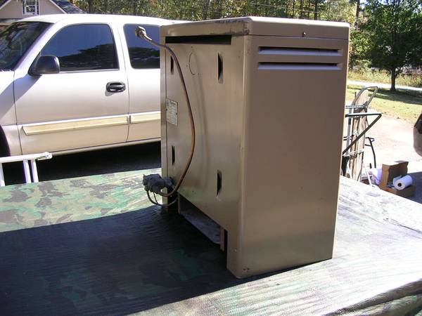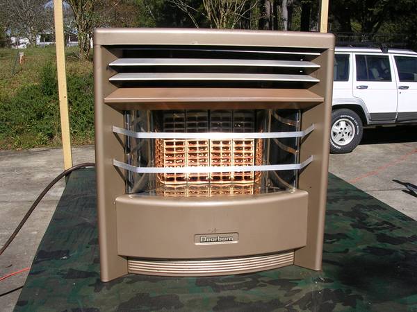 I have a Dearborn natural gas heater I think its probably from the 60's or 70's maybe earlier in good condition has 1 little ding in the back all the ceramic tiles are there none are broken ....