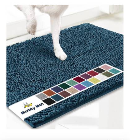 New, never used, 24” X 36” Muddy Mat, Atlantic Blue, for bathroom or mud room for your pets or kids. Nothing wrong with it, just didn’t work for my space. $37.00 new in store.
