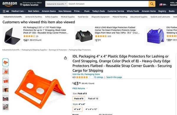 TRUCKING STRAP DOWN PROTECTORS - CORNER PROTECTORS - For 2" Strap...