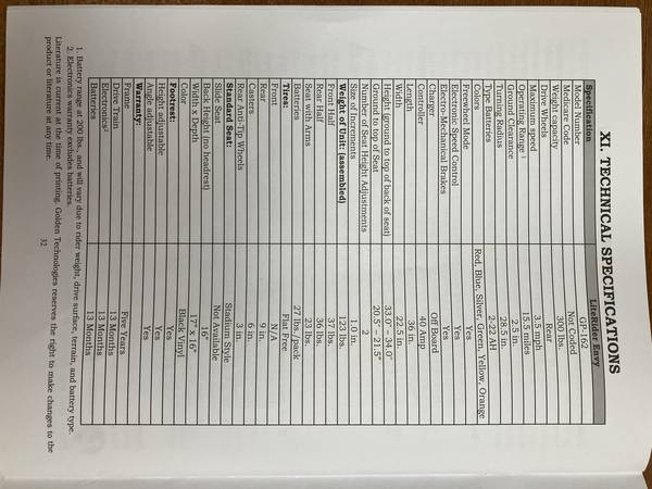 Battery: 2-22 AHSpeed: 3.5 MPH