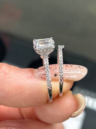 14k gold engagement ring, emerald cut lab grown diamond, 1.09 CT, clarity: VS 1, color: E