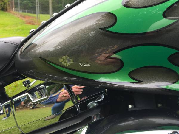 2003 100th Anniversary Edition. This bike is #3 of 200 as you will see in pics. Awesome bike no problems no leaks. Vance and Hines pipes sounds incredible. Also has Mustang seat with back rest. Low miles 24,000. The paint job is called tribal flames. If interested text 864-680-2740. Price is firm. You won’t find a better bike for the money. Cheaper insurance and low taxes. Thanks