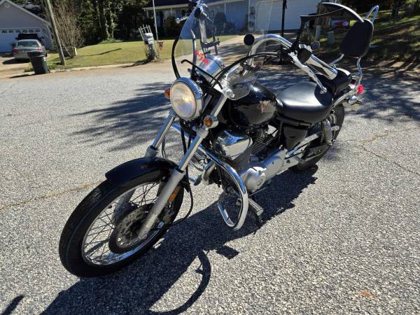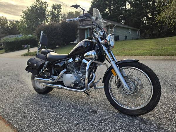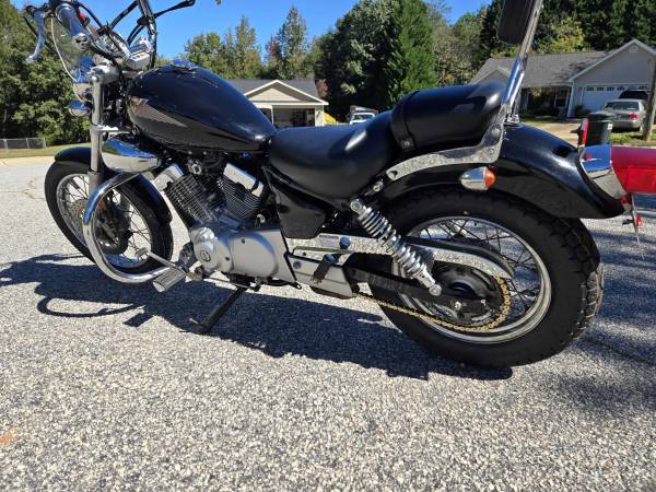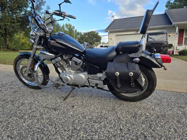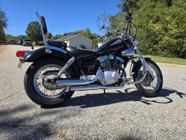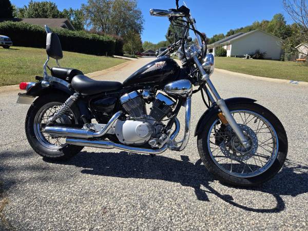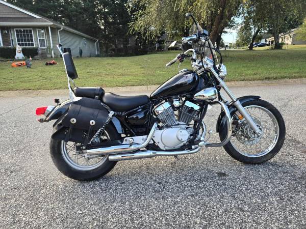 This bike is in excellent condition not a scratch on it runs like a top about 78 miles to the gallon this was definitely yamaha's version of the Honda Rebel this is a little more stylish bike than the Honda Rebel and see the backrest the crash bar a little more Lean low off the ground makes for easy handling beautiful bike comes with two brand new Bridgestone Tires on the bike front and rear also comes with a brand new chain and full service bike is ready to be ridden we are in Taylor South Carolina