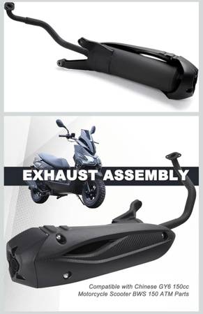 Motorcycle Exhaust Assembly in Heavy Iron Material Compatible with Chinese GY6 125cc 150cc 4-Stroke Engine Scooter Moped RSZ 150 Gas Engine Scooters