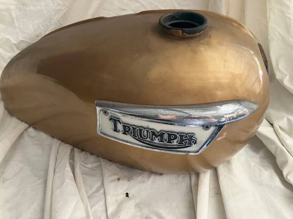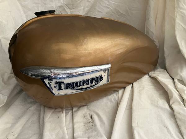 Like new, Triumph Trident gas tank. 69 later. Easley Cycle Repair 494 Pearson rd. Easley SC Your Local Friendly British Motorcycle Shop.