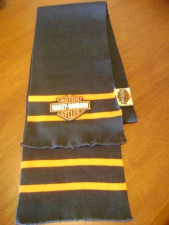Vintage Harley Davidson Scarf. Orange Stripes with Large Rubber Logo. Measures about 65 in in length and 7 in wide. Price $20.00 Please call Thanks for looking.