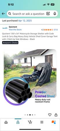 Brand new in the box, totally waterproof storage tent for Motorcycle Sells normally for $279 Have medical issue don’t need it anymore big enough for any dresser Harley or Goldwing