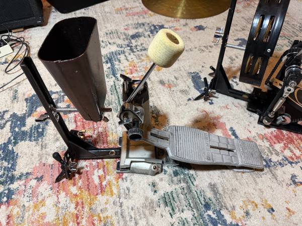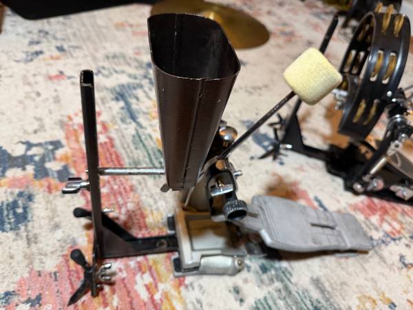 I have two used adjustable percussion stands/brackets by LP for cowbells, tambourines, blocks and other percussion instruments. The stand attaches to bass drum pedals for foot operation. One stand comes with a cowbell and the other with a tambourine. The price is $30 for each bracket with no pedal is included. I do have two bass drum pedals for sale also.