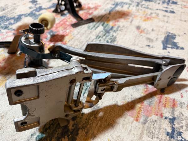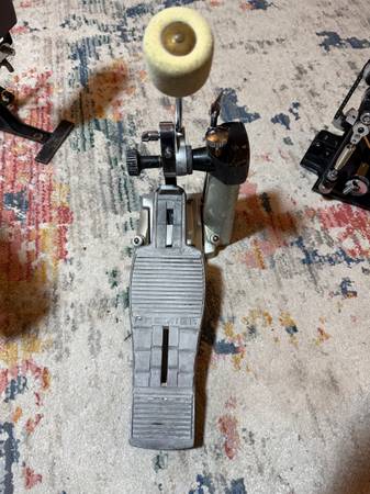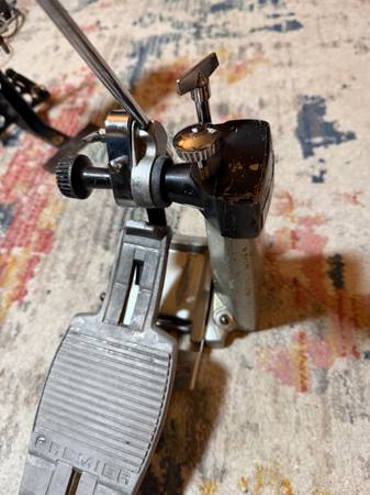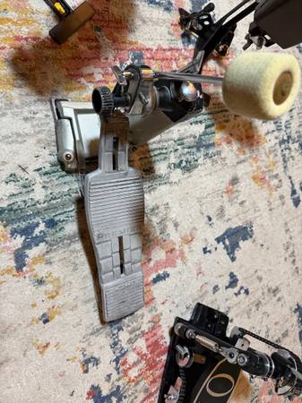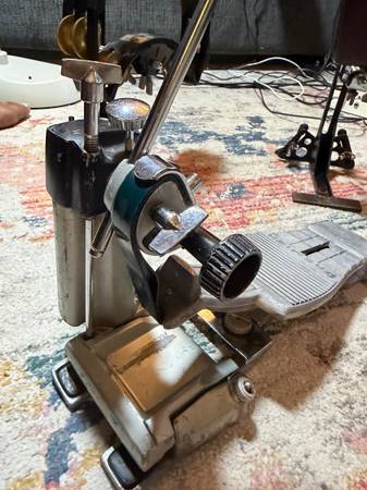 I have two foot pedal stands/brackets that hold cowbells, blocks, tambourines, and other percussion instruments. Also have for sale a vintage Canon Twin Effects bass drum pedal, Paiste model 200 20” ride cymbal, and cymbal stands.