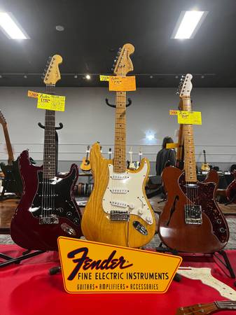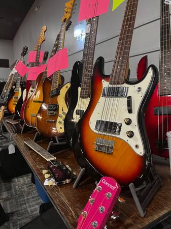 Gibson, Fender, PRS, Yamaha, Teisco, Del Rey, Marshall, Ampeg, Music Man, Orange, etc..