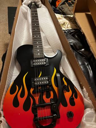 Beautiful flame guitar with bigsby style tailpiece. Opened just for these pictures. Would consider trades for autobody repair equipment, English wheel, brake, frame/body straightener, rolling...