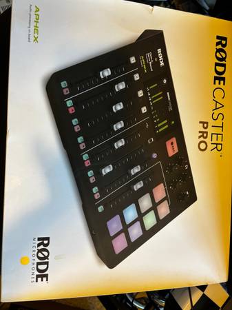 Rodecaster Pro and POD mic with desk mic boom and desk mount platform for the Rodecaster. These are in excellent condition .. used less than an hour. Trades considered. PS5, drum equipment, mics.