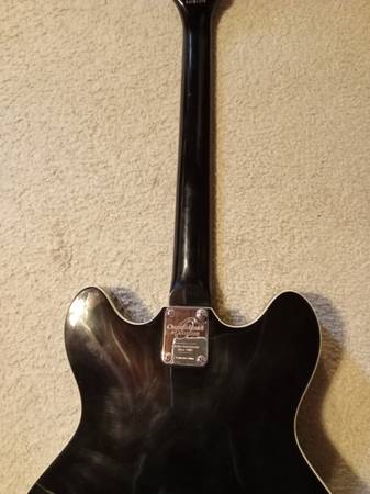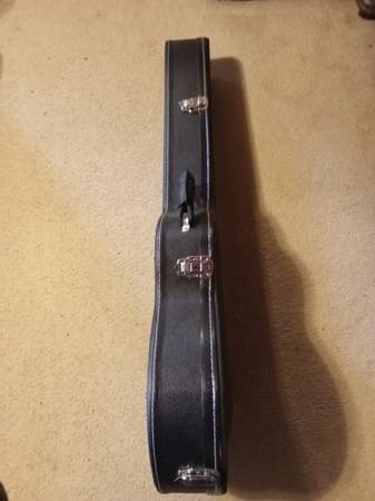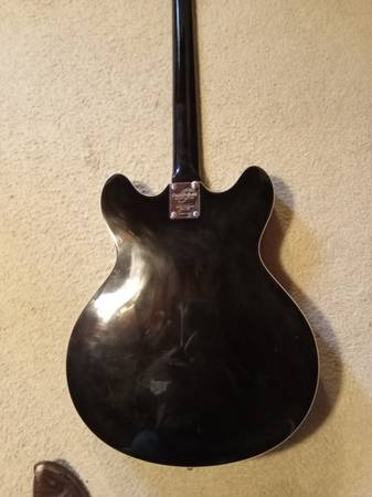 Oscar Schmidt Delta King OE30 semi hollow body electric guitar with hard shell case. Two humbucker pickups with a sweet, fast action that frets so easily you can practically breath on it to play! Sounds great through an amplifier. This is an excellent guitar for blues lead.