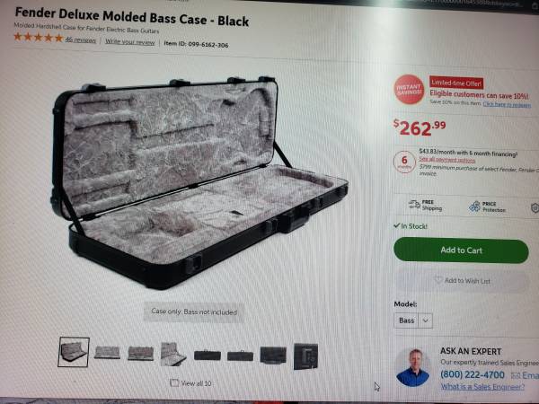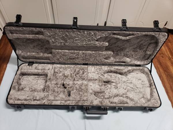 This is a brand new Fender Deluxe Molded Bass Case in Black color. This case will fit Fender Precision and Jazz styles bass guitars. This hard shell case comes with two keys. The price has been reduced to $150.
