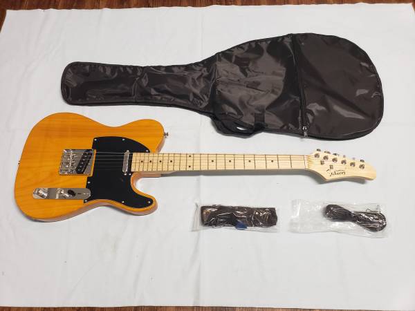 This Glarry Telecaster Style Electric Guitar in natural color is brand new. This guitar has been set up with a nice action for fast soloing. This is a great sounding, great playing and great looking electric guitar. This guitar comes with a light weight gig bag, shoulder strap, picks and wrenches to adjust the saddle and neck. This is a great guitar, especially for a beginner or intermediate player.