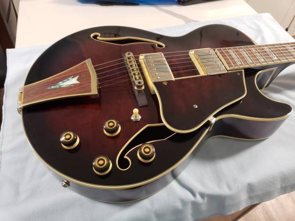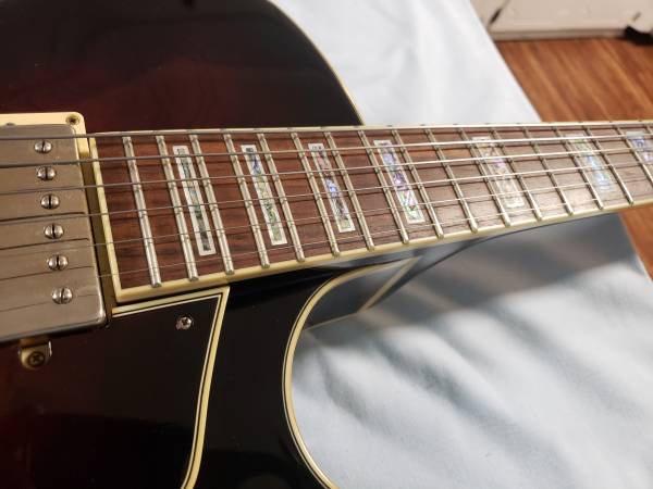This Ibanez AG95-DBS-12-03 Full Hollow Body Electric Guitar is in excellent overall condition. There is a minor ding at the top edge of the headstock and light scratches on the guitar. Please check out the attached photos. This guitar has been set up with a set of flat wound strings. This is an awesome sounding, awesome playing and awesome looking electric guitar. This guitar comes brand new accessories. Included is a new hard shell case, new shoulder strap, picks and strap locks. Below is some additional info on this guitar.