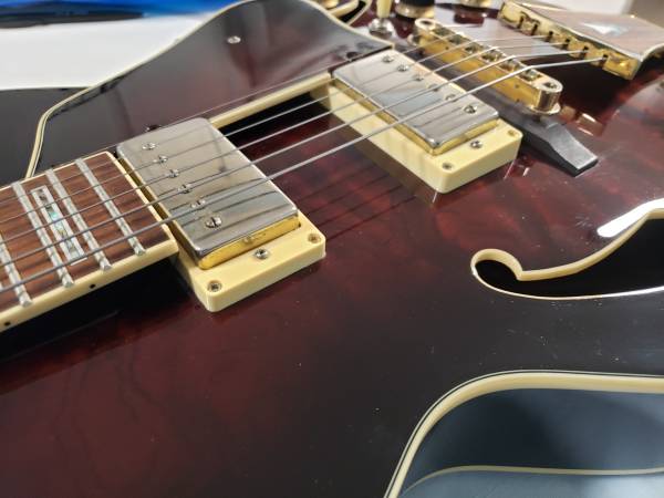 - Description: This Ibanez ARTCORE series full hollow-body guitar features a compact body made from unique Bubinga wood with luxurious inlays on the fretboard and tailpiece. The dark brown sunburst finish adds a sophisticated, high-end look. It delivers clear sound articulation and balanced resonance, suitable for clean to distorted tones. Its smaller body size offers comfortable playability and closer neck reach.