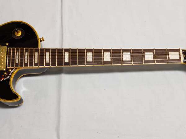 This customized replica Gibson Les Paul Custom Black Beauty Electric Guitar is brand new. This guitar comes with a brand new gig bag, new shoulder strap, the original pickguard, several picks and strap locks. This is an awesome sounding, awesome playing and awesome looking electric guitar.