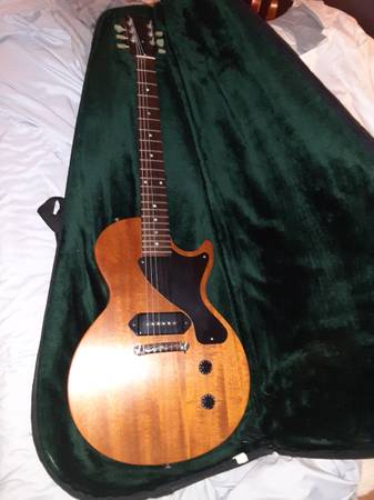 Great LP Jr, 2004 issue, Pro refinished to natural, Great sounding P90 No fretwear, slim tapered neck. Nice Gibson green velour lined soft case. $1250 obo. No low ballers, no trades NO SHIPPING.