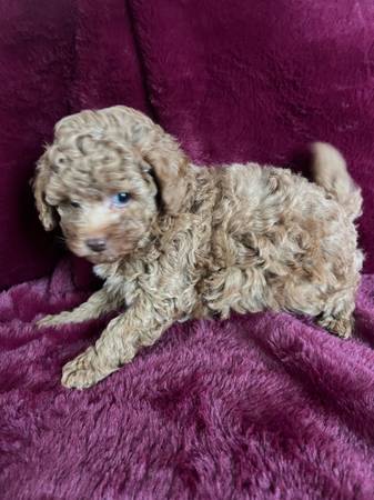 We have 3 beautiful poodles ready for their forever homes they are 10 weeks old they have had their 2nd set of shots with vet they are Ckc reg mom is chocolate dad is cream with a chocolate nose all puppies are charting to be 8 1/2 pounds and less more info. Call show contact info