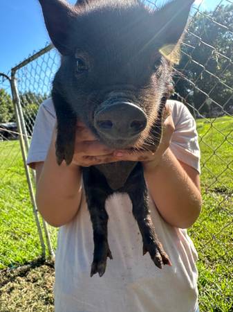 I have three Idaho Pastor/Potbelly mix piglets. I have three left two males and a female. All black . Please text me for more details.