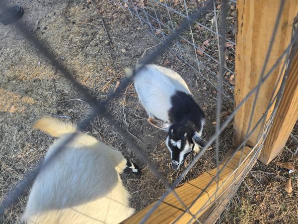 Sadly we are moving away goats so we got let go of our 2 babies! Bacon is the big one (born april 9th) male. And Minnie is the little one(born June 6th) female.both were bottle babies. Nothing wrong with them. Just moving on from goats. They must go to a good home together. Will not seperate. LAURENS sc. $300 for both of them.