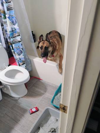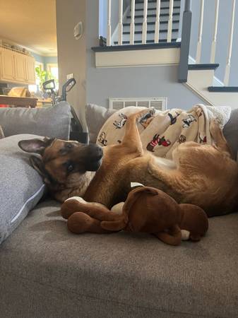 Enzo is a gentle giant who is good with all dogs, extra gentle with tiny pups, loves kids and everyone he meets. 100% housebroken no accidents. Doesn’t chew up your stuff. We have 2 cats and he respects them.