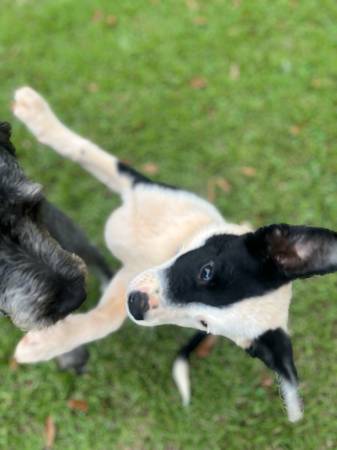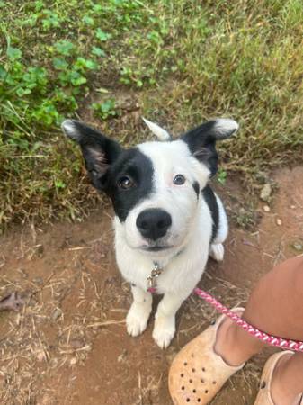 Good with kids, cats, other dogs, rabbits, chickens. Very friendly absolutely loves people. He is a herding breed needs so land to run around on. Crate trained and almost fully potty trained knows the word potty and knows sit command.