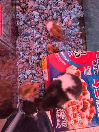 Baby syrian hamsters available. 4 weeks old. 2 black and white female 4 brown and white female 4 brown and white male 20 rehoming fee to ensure loving homes. First come, first serve. Cash only. 864...