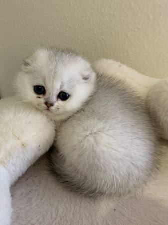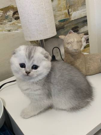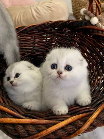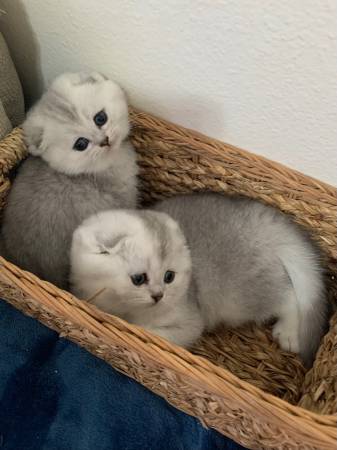 We have Scottish fold/straight kittens.2 males and 2 females , they are 6 weeks old and in 2 weeks they will have their first shots and be dewormed and will ready to go to their new home. .