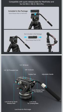 Quick Mode Switching: The heavy fluid head adopts a newly-designed snap-on quick-release plate mount and can realize quick assembly. Also, it is compatible for DJI RS 2 / RS 3 / RS 3 Pro quick release plate and for Manfrotto quick release plate to realize a free switch between stabilizer shooting and tripod shooting