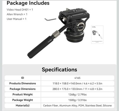 With One 1/4"-20 Threaded Hole: The video head also comes with one 1/4"-20 threaded hole to support the magic arm and other accessories and built-in a wrench to help install and release the camera. The package includes video head DH01 x 1, allen wrench x 1, user manual x 1
