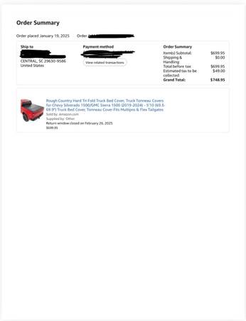 Rough Country Hard Tri-Fold Truck Bed Tonneau Cover for Chevy Silverado & GMC Sierra 1500 (2019-2025) - Aluminum Flip-Up Folding Bed Cover, Fits 5'10 (69.9") Bed. This has been garage kept and out of the elements. Looks brand new. Should fit 2026 models since the bed did not change to my knowledge. You can see what I paid new. Asking $450 obo. 86four-48three-23onethree.
