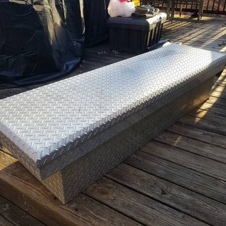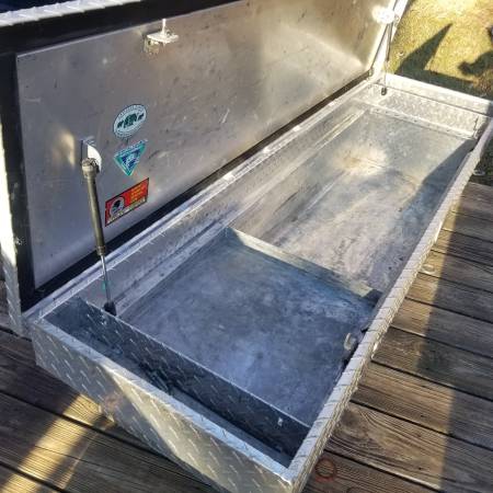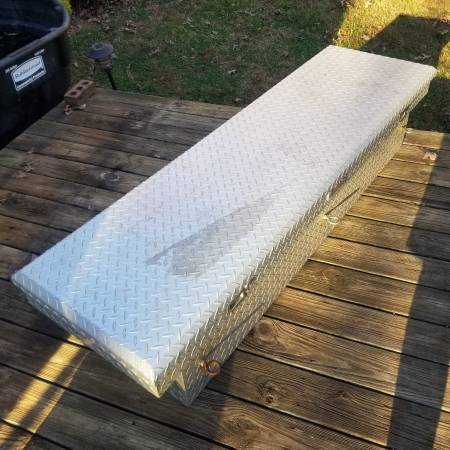 This is a stainless steel tool box in decent condition for a full size truck. Comes with a key.