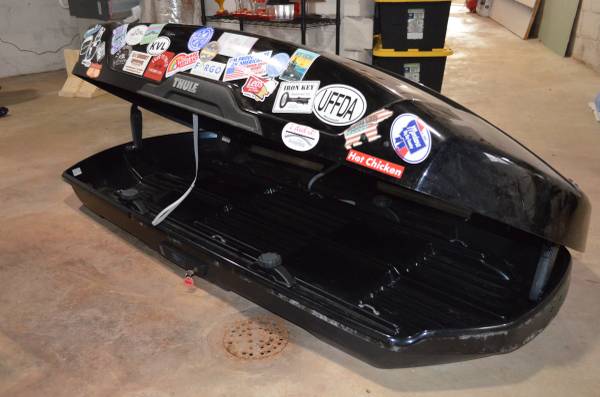Model 6297B. Includes two keys and tie down straps for items inside the box. Cargo box is secured to vehicle with integrated brackets which clamp to your roof rack.