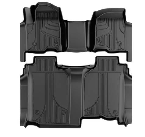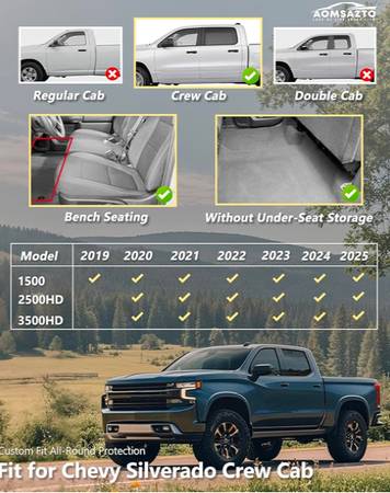 AOMSAZTO Custom Floor Mats for Chevy Silverado/GMC Sierra 2019-2025 Crew Cab, 1st & 2nd Row All Weather Floor Liners for Chevrolet Silverado/GMC Sierra Denali 1500 | 2500 HD | 3500 HD Crew Cab...